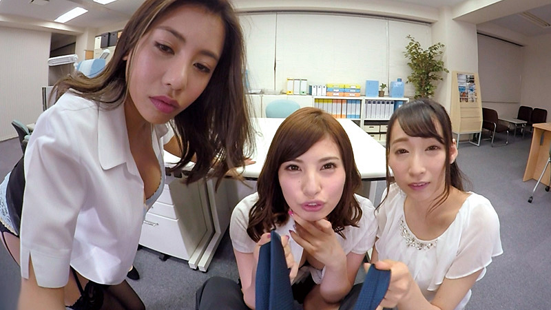 総務部4課のお姉さま達が残業終えロッカーへ、そこで一人残業をしている僕を見つけるとなにやらイタズラな笑顔で近寄ってくる。案の定まじめに仕事をしている僕を茶化し始めた。会社の中なのにパンティを見せつけたりおっぱいを揉ませてくれたり、挙句の果てに3人でフェラのサービスまで。お色気たっぷりのお姉さま達のサービスをVRで堪能しちゃってください。残業しててよかった-!!